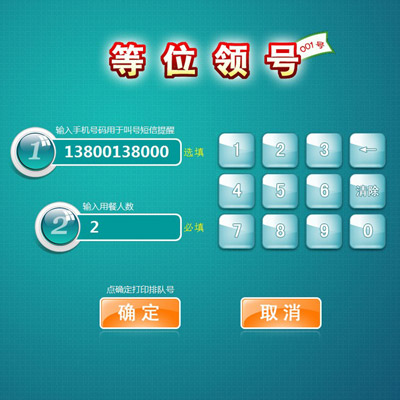 点击屏上的数字即可打印一张号票给顾客。同时主界面显示相应的票号,例如A3。